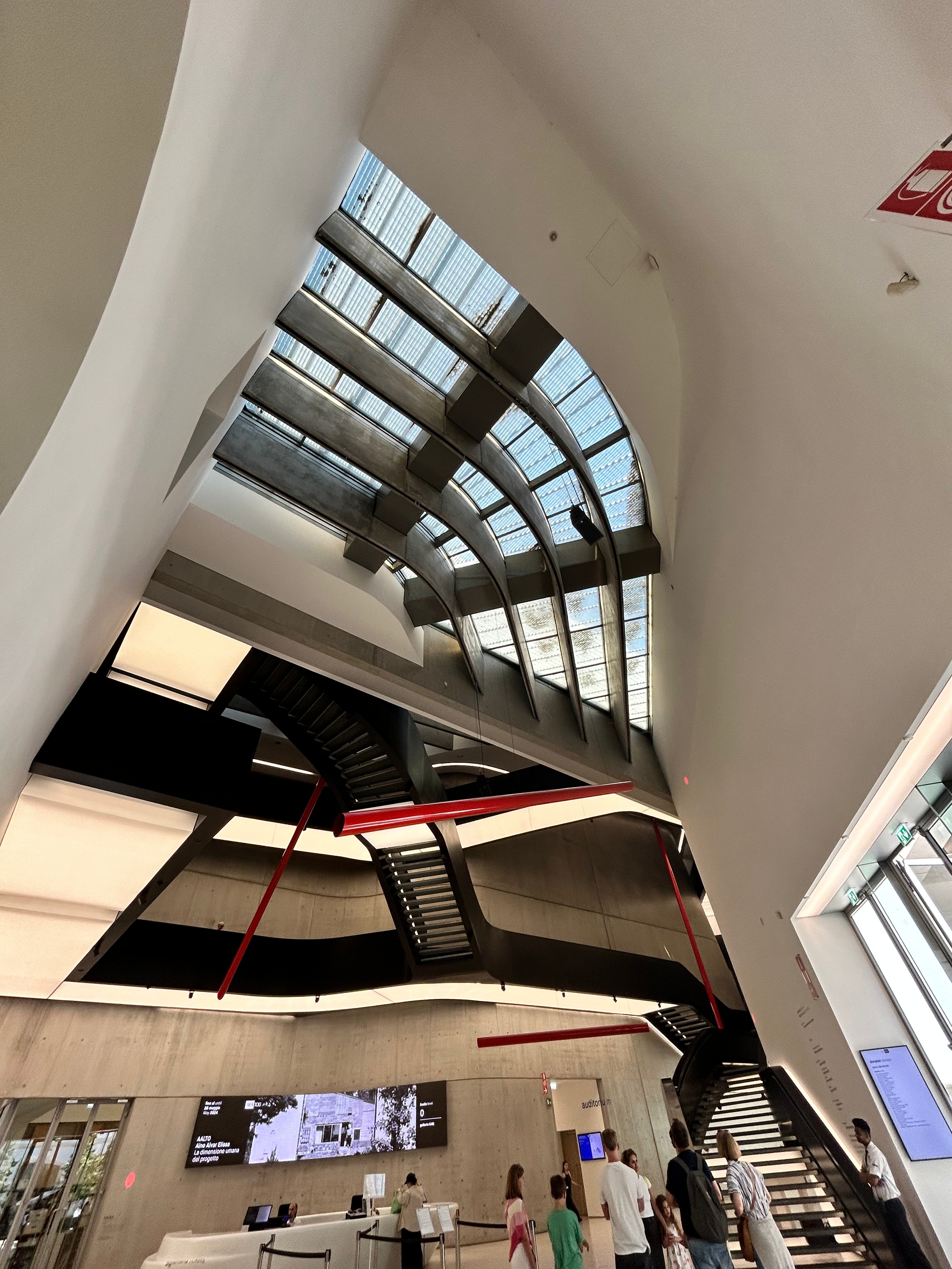 A Roma abbiamo la fortuna di abitare la casa di una terza Francesca, la nostra mamma romana, che ci accoglie nella sua bellissima terrazza circondata di piante, abbracci, risate e racconti al femminile. Siamo delle privilegiate nel suo bellissimo BeB. https://www.bed-and-breakfast.it/it/lazio/aurelio-aquilone-bb-roma/39326. Appena fuori dalla nostra nuova casa, la primavera romana ci pervade. Le tappe da non perdere sono chiare nella mia mente. Passi, scale mobili, passi e ancora passi. Il vento all’imbocco della via d’uscita per Piazzale Flaminio, ricordi, come il mercato confuso proprio lì all’uscita. Una follia la decisione di incamminarci a piedi, ma il lungotevere Flaminio non lo temiamo e dopo aver preso fiato sul ponte della Musica, ci lasciamo avvolgere come è giusto che sia dal museo MAXXI. Ripercorro, in un viaggio anche temporale, via Flaminia, l’ingresso alla mia Facoltà, dove i grandi tavoli da disegno si sono rimpiccioliti adeguandosi ad un 15’’. Sorprendente!