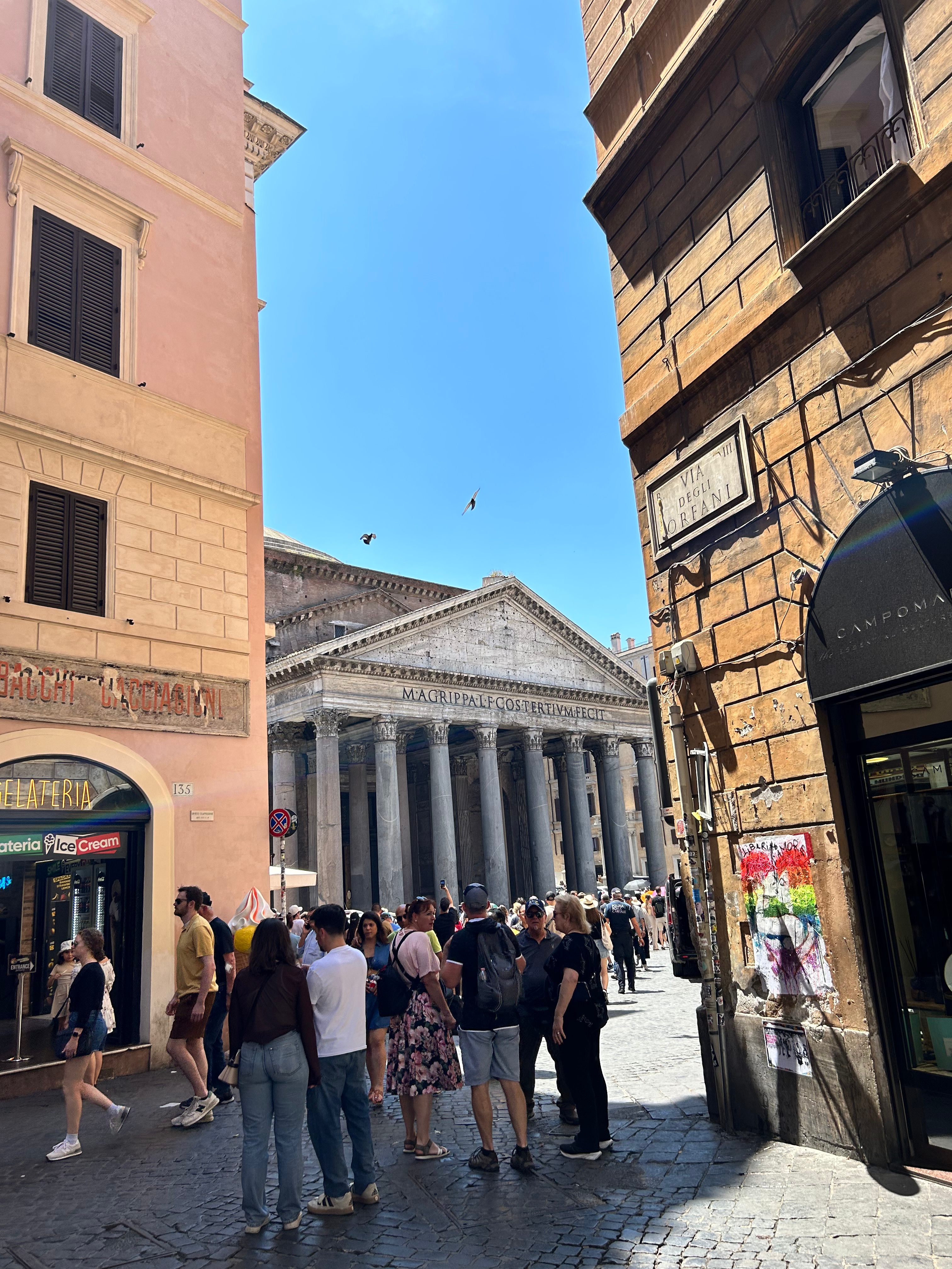 Roma è un viaggio da turiste in una città che per me turistica non lo è mai stata. Ed è bello questo nuovo sguardo, che ci trasporta dal Chiostro del Bramante, al Pantheon, con doveroso saluto al Caravaggio del San Luigi dei Francesi che ogni volta lascia senza fiato. Campo dei fiori con le sue strade artigiane e la pizza croccante ci conduce alla Fontana delle Tartarughe. Non possiamo non fermarci e goderci quest’ora del tramonto con il piacere di raccontarsi ancora, progettare cammini e sentirsi a casa.